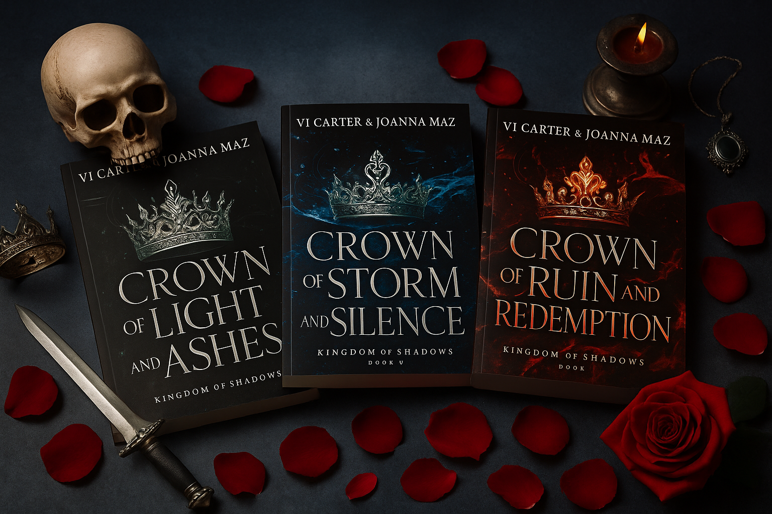 Enter the Kingdom of Shadows, where power, passion, and betrayal collide in this breathtaking romantasy trilogy by VI Carter & Joanna Maz.